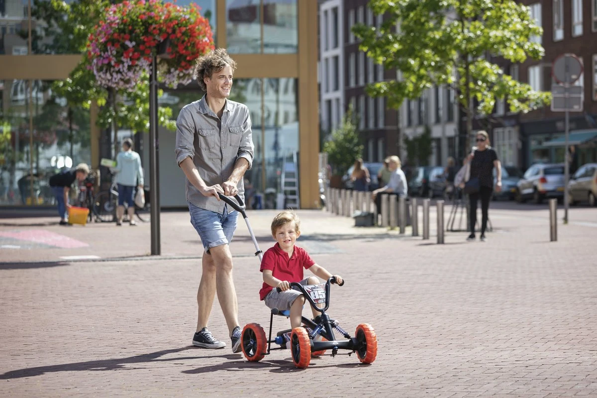 De BERG Buzzy Nitro is nu ook als BERG Buzzy 2-in-1 leverbaar. Deze Buzzy Nitro is uitgerust met een schakelbare vrijloop, een duwstang en een gebruiksvriendelijk stuurslot. Hierdoor is de stabiele skelter nu ook te gebruiken als duw-skelter waardoor je met je kind gemakkelijk en veilig op pad kunt.