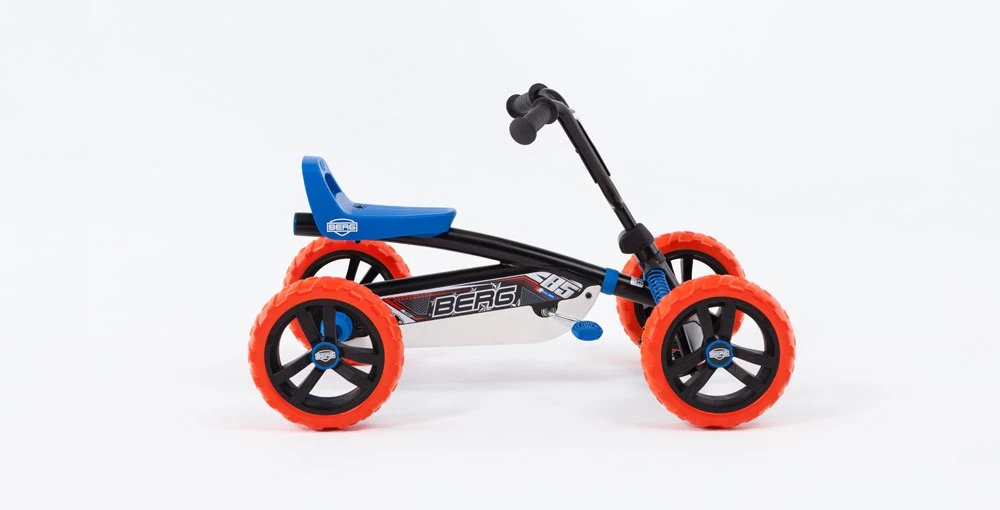 De BERG Buzzy Nitro is hét Buzzy-familielid met een spetterend offroad design. Door 4 super stoere EVA banden zijn lekke banden definitief verleden tijd en is de skelter super veilig en stabiel. De skelter kan zowel voor- als achteruit rijden. Binnen een paar seconden kan de skelter volledig tot stilstand komen. De BERG Buzzy Nitro is gemaakt voor kinderen van 2 tot 5 jaar. Het stuur en de stoel zijn beide gemakkelijk te verstellen.