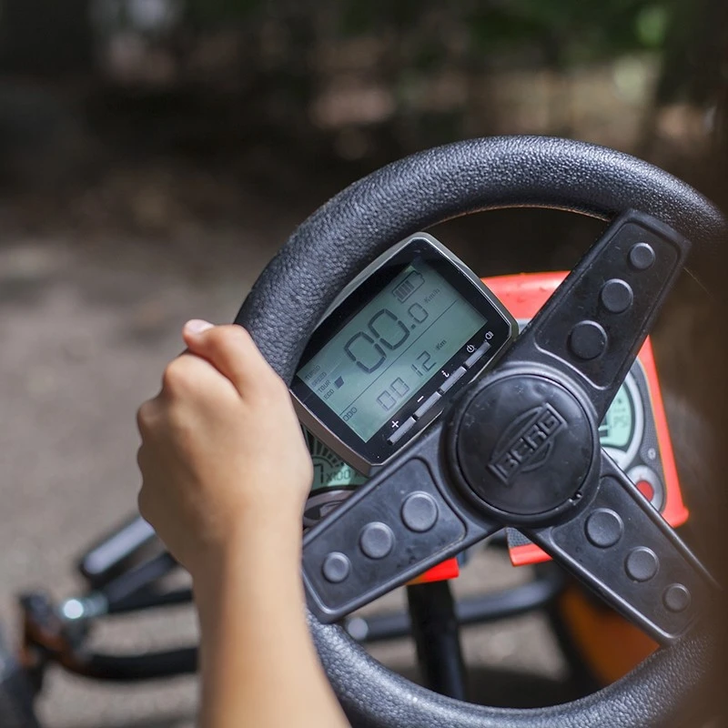 Met deze stoere Extra Sport E-BFR skelter van kwaliteitsmerk BERG racet uw kind razendsnel over de weg heen. De skelter heeft de uitstraling van een echte racewagen en is voorzien van reflecterende spatborden. Het unieke E-BFR systeem met 250W E-Motor biedt trapondersteuning waardoor snelheden tot wel 16 km p/u behaald kunnen worden. Dit gebeurt ook nog eens honderd procent veilig doordat er zowel vooruit als achteruit getrapt kan worden en remmen een eitje is. De skelter heeft vier stevige luchtbanden en een schommelas voor stabiele wegligging. Op het display is de snelheid, afstand en accu capaciteit af te lezen. Door het robuuste frame is de skelter geschikt voor kinderen vanaf 5 jaar, maar ook voor volwassenen. De skelter zorgt voor urenlang plezier van jong tot oud!